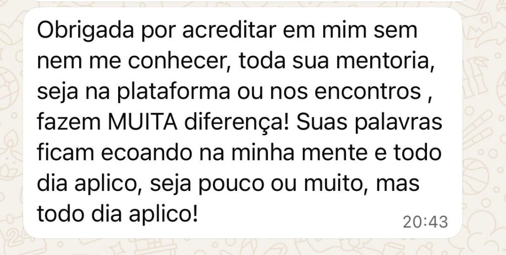 Eu acredito que o seu sucesso é a maior prova de que o Método funciona. Agora é a sua vez de acreditar.